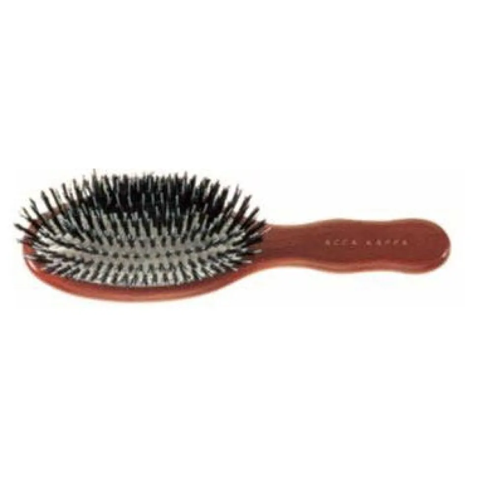 Die Bürsten sind so konzipiert, dass die einzelnen Büschel durch die Haare bis auf die Kopfhaut eindringen. Die Kopfhaut wird stimuliert, der Haarschaft poliert. Das Naturkautschukkissen sorgt durch seine spezielle Form für eine gleichmäßige Druckverteilung. Antistatisch. Ideal für mittleres und langes Haar.