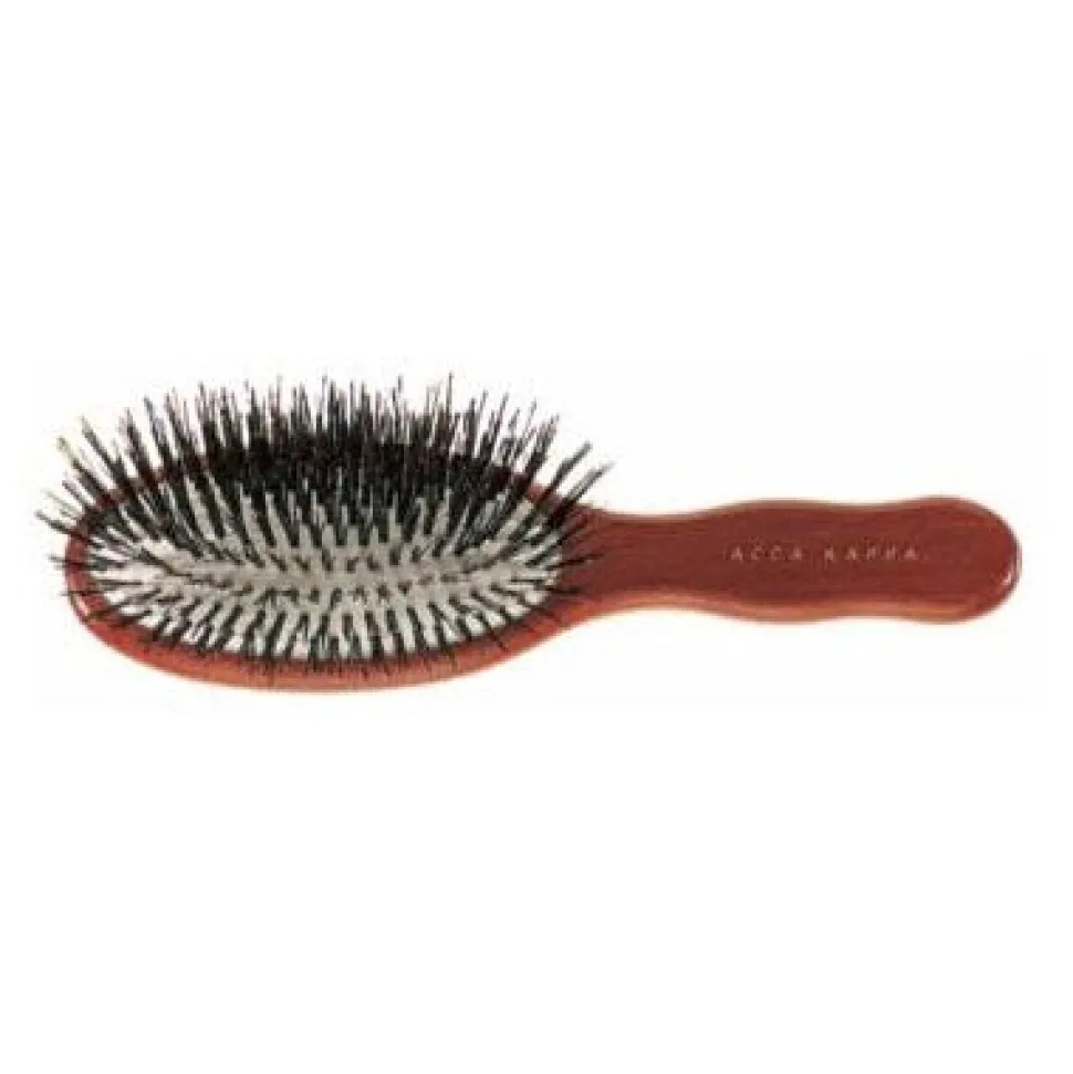 Die Bürsten sind so konzipiert, dass die einzelnen Büschel durch die Haare bis auf die Kopfhaut eindringen. Die Kopfhaut wird stimuliert, der Haarschaft poliert. Das Naturkautschukkissen sorgt durch seine spezielle Form für eine gleichmäßige Druckverteilung. Antistatisch. Ideal für mittleres und langes Haar.