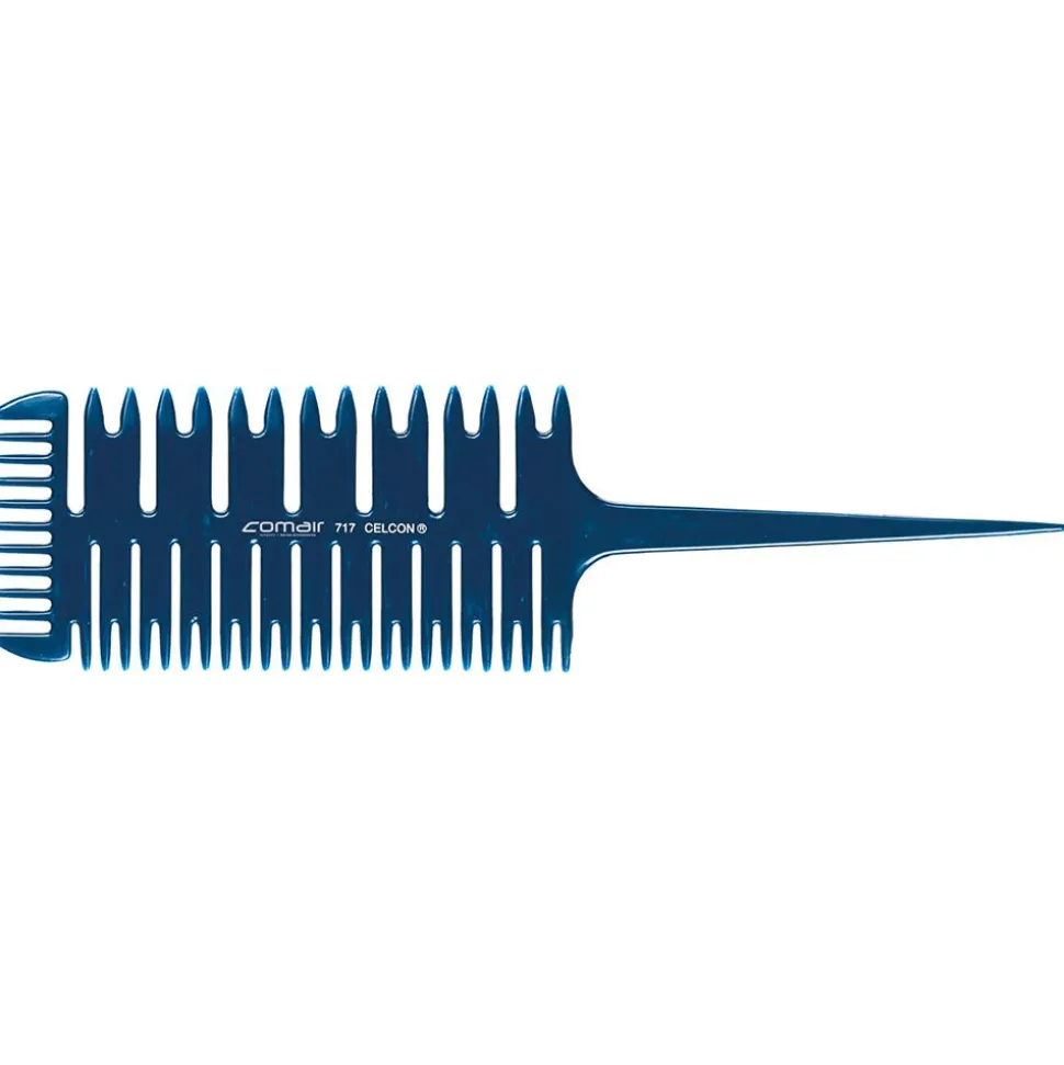 Der Comair Färbe- und Strähnenkamm 717 Blue Profi Line ist ein starker und widerstandsfähiger Kamm aus CELCON-Material. Er ist hitzebeständig und ideal zum Föhnen.