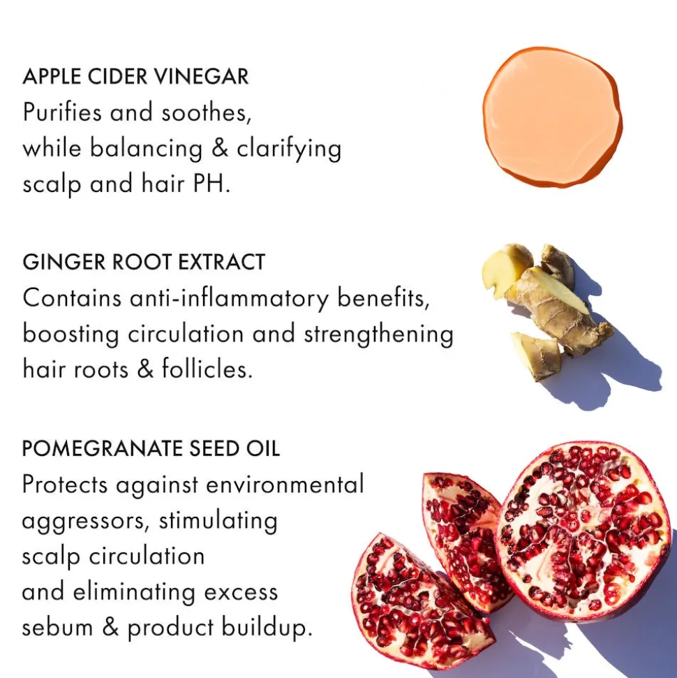 - Nachhaltig erzeugter Apfelessig reinigt und beruhigt, während er den PH-Wert von Kopfhaut und Haar ausgleicht.