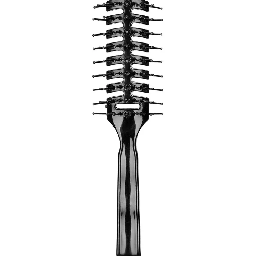 Die Fripac Ventbürste Schwarz 7-reihig ist eine kleine Ventbürste mit Noppen. Sie hat große Luftöffnungen für schnelles Trocknen der Haare und abgerundete Noppen, um das Haar und die Kopfhaut zu schonen.