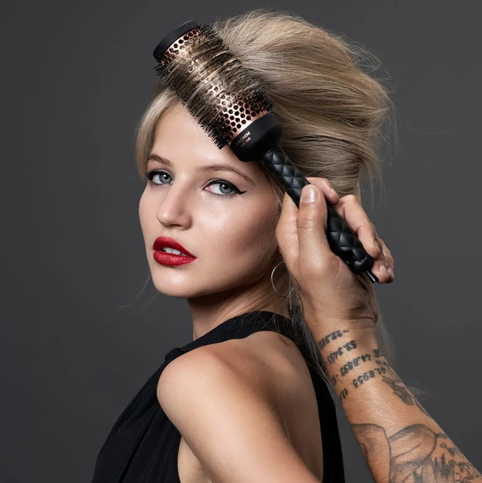 Die FrommBrushes Heat Duo KupferRundbürste 2 inchentfesselt Kreativität und atemberaubende Styles durch die fortschrittlichste dualen Kupfer- und Keramik-Rundbürstentechnologie, gepaart mit überlegenem Design.