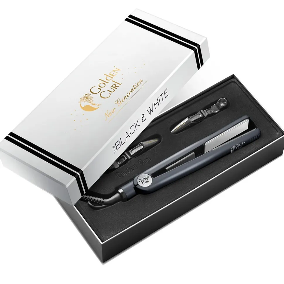 DasGolden Curl Tourmaline Glätteisen (Black & White)ermöglicht mit 1 Inch Turmalin Keramik beschichteten Platten und Temperatur Regelung 80°- 230°C ein bequemes und haarschonendes Haare glätten und Haare locken. Mit Salon Qualität und zusätzlichem Zubehör für optimale Handhabung & atemberaubende Resultate.
