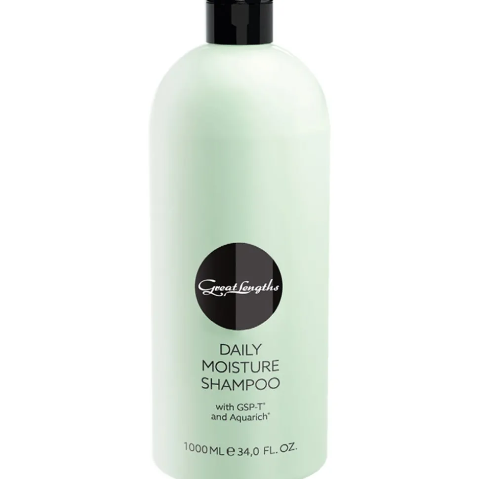 Das Great Lengths Daily Moisture Shampoo für die tägliche Haarpflege der sanften Art. Daily Moisture ist für alle Haarqualitäten geeignet, besonders bei leicht trockenen Haarspitzen und trockener bis leicht fettende Kopfhaut. GSP-T schützt zusätzlich vor freien Radikalen. AQUARICH liefert wertvolle Feuchtigkeit und Aufbaustoffe, die das Haar verstärken. Die Rezeptur mit ALOE VERA gleicht Feuchtigkeitsverluste aus, gibt dem Haar besondere Geschmeidigkeit und verleiht mehr Volumen und Glanz. Die Frisierbarkeit wird verbessert. Der pH-Wert 5,5 ist besonders kopfhautfreundlich und gut verträglich.