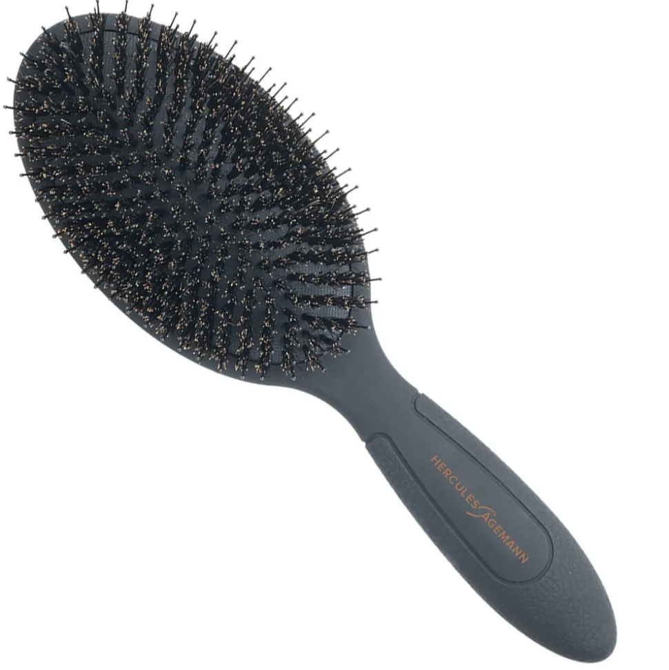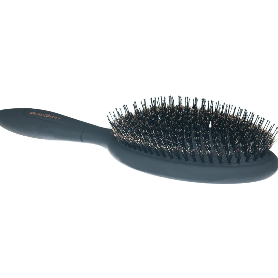 Die Hercules Sägemann Ovale Pflegebürste Schwarz 9151 ist eine hochklassig qualitätvolle und elastische Pflegebürste.Wildschweinborsten ebnen die Schuppenschicht des Haares. Die Bürste besteht aus Polyamidstiften mit weichen Kugelköpfen.