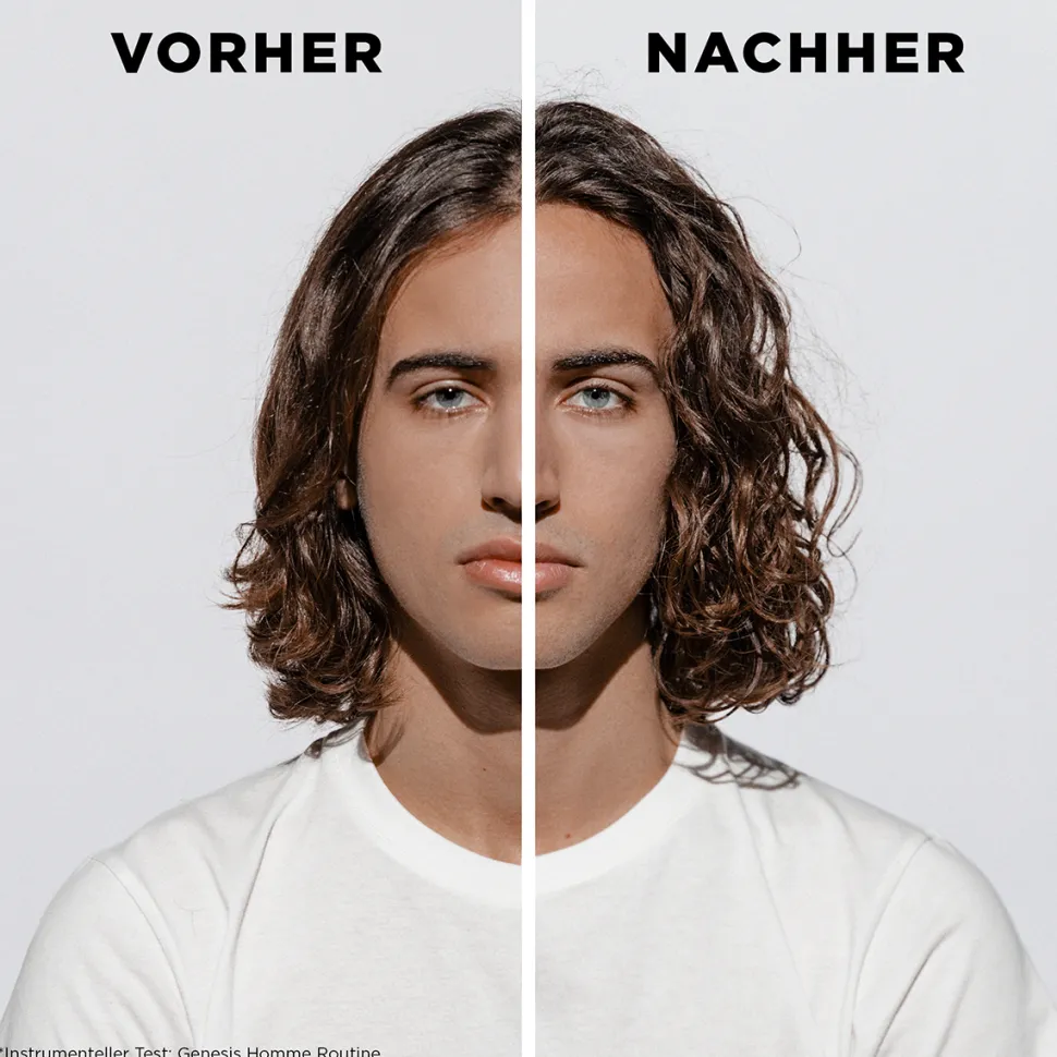 Als Abschluss der Genesis Homme Routine. 3-4 Pipetten auf die trockene oder handtuchtrockene Kopfhaut punktuell auftragen. Sanft einmassieren. Nicht ausspülen.