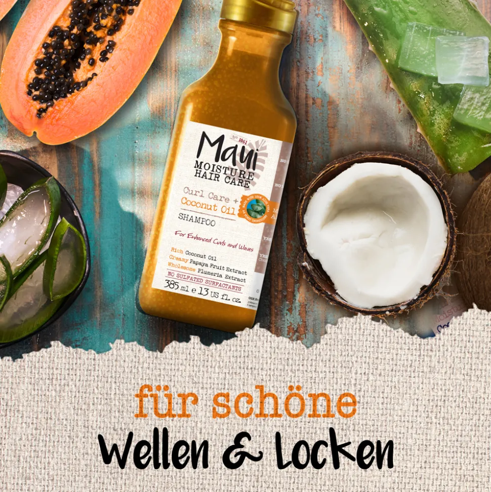 DerMaui Moisture Curl Quench & Coconut Oil Conditioner ist die ideale Pflege für dickes und lockiges Haar.Der cremige, sanfte Conditioner ist mit reichhaltigem Kokosöl, Papayabutter und Frangipani-Extrakt angereichert. Er pflegt die Locken, reduziert Frizz, gibt dem Haar Definition und verbessert Geschmeidigkeit und Volumen. Das Ergebnis: Glänzende, volle Locken und Wellen.