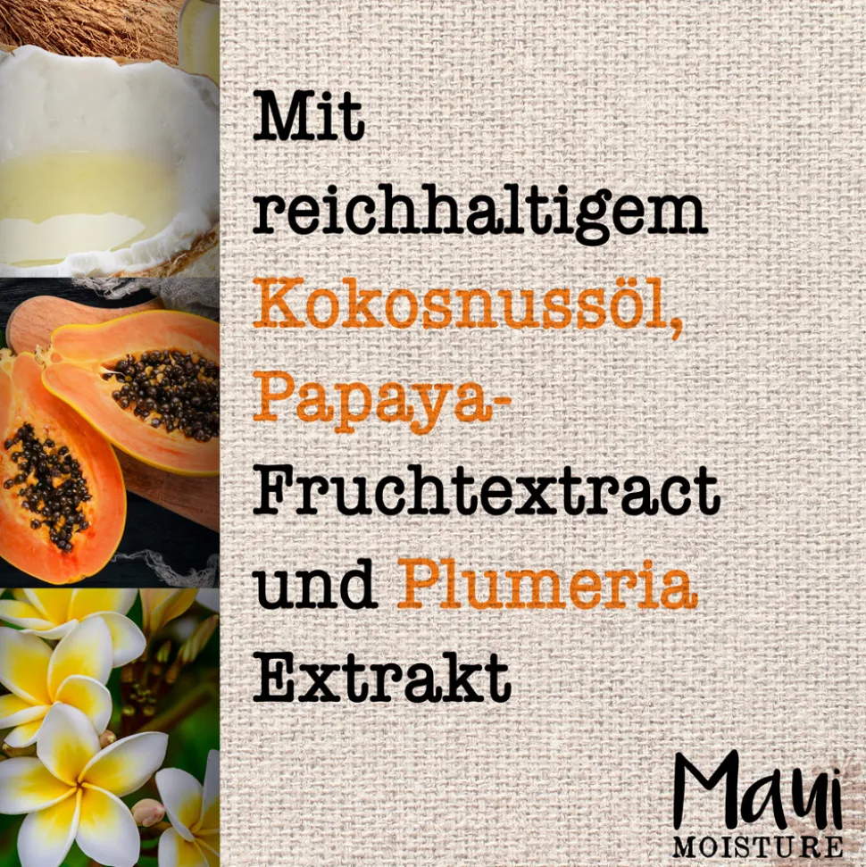 | Inhaltsstoffe | Aloe Barbadensis Leaf Juice, Aqua, Water, Eau, Sodium C14-16 Olefin Sulfonate, Cocamidopropyl Betaine, Citric Acid, Glycol Distearate, Coco-Glucoside, Cocos Nucifera (Coconut) Water, Cocos Nucifera (Coconut) Oil, Carica Papaya (Papaya) Fruit Extract, Plumeria Alba Flower Extract, Polyquaternium-6, Polyquaternium-10, Acrylates Crosspolymer-4, Laureth-4, PEG-150 Pentaerythrityl Tetrastearate, PPG-2 Hydroxyethyl Cocamide, Guar Hydroxypropyltrimonium Chloride, Glycerin, Hexylene Glycol, Sodium Hydroxide, Sodium Citrate, Sodium Benzoate, Formic Acid, Phenoxyethanol, Leuconostoc, Radish Root Ferment Filtrate, Benzyl Alcohol, Salicylic Acid, Sorbic Acid, Sodium Bicarbonate, Sodium Sulfate, Sodium Chloride, Glyoxal, Isopropyl Alcohol, Parfum, Fragrance, Limonene, Coumarin. |