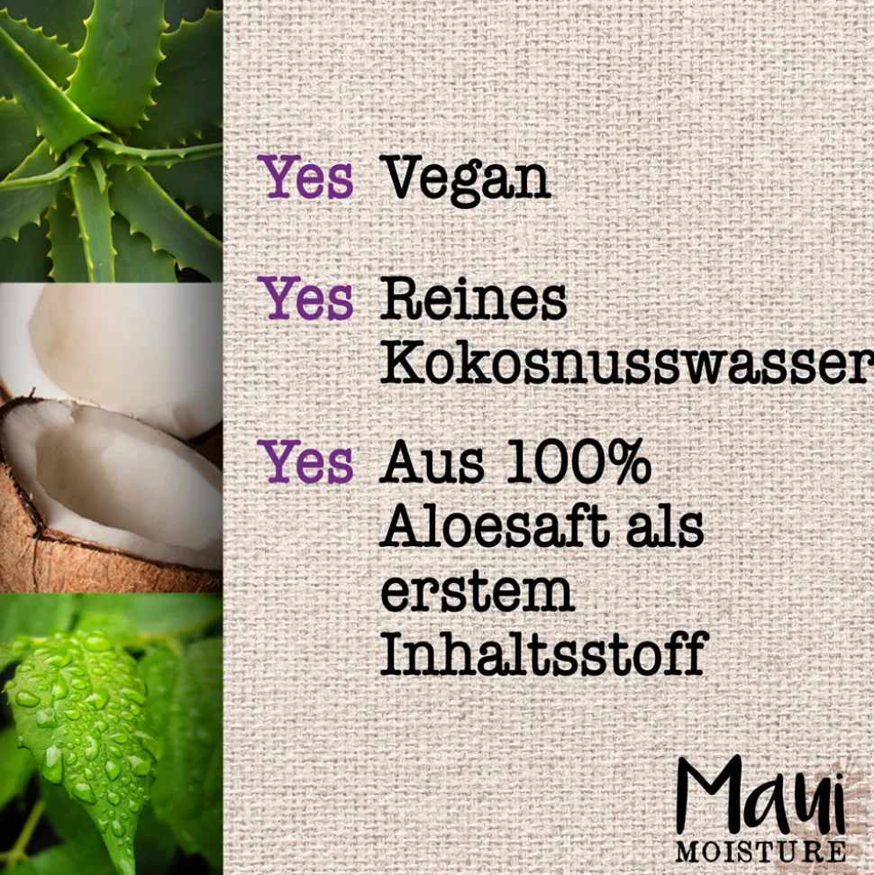 | Inhaltsstoffe | Aloe Barbadensis Leaf Juice, Aqua, Water, Eau, Cetearyl Alcohol, Behentrimonium Chloride, Cetyl Alcohol, Glycerin, Cocos Nucifera (Coconut) Water, Cocos Nucifera (Coconut) Oil, Kappaphycus Alvarezii (Algae) Extract, Spirulina Maxima (Algae) Extract, Laminaria Digitata Extract, Sea Water Extract, Isostearyl Hydroxystearate, Stearamidopropyl Dimethylamine, Isopropyl Myristate, Dicaprylyl Carbonate, Panthenol, Polyquaternium-37, Polyquaternium-10, PPG-1 Trideceth-6, Steareth-20, Propylene Glycol Dicaprylate, Dicaprate, Isopropyl Alcohol, Citric Acid, Sodium Hydroxide, Sodium Benzoate, Leuconostoc, Radish Root Ferment Filtrate, Benzyl Alcohol, Phenoxyethanol, Salicylic Acid, Sorbic Acid, Acrylates, Stearyl Methacrylate Copolymer, Sorbitan Oleate, Tocopherol, Glycine Soja (Soybean) Oil, Sodium Chloride, Isostearyl Alcohol, Hydroxystearic Acid, Glyoxal, Parfum, Fragrance, Limonene, Hexyl Cinnamal, Linalool. |
