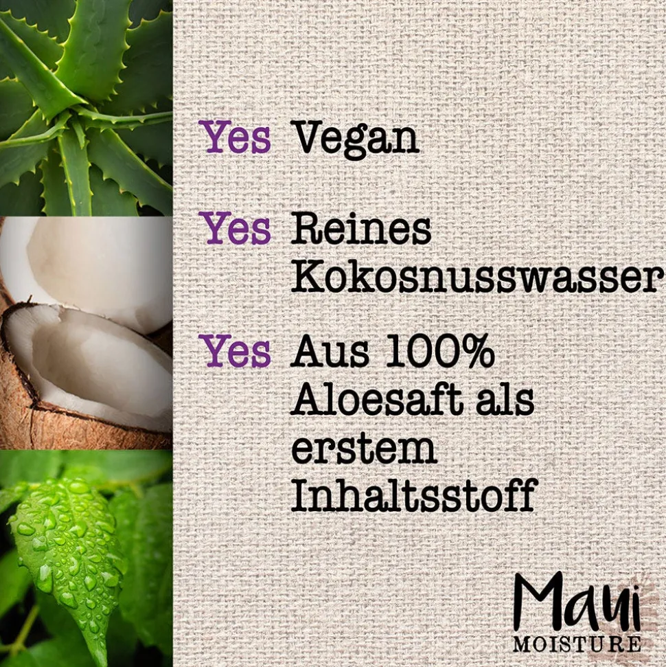 | Inhaltsstoffe | Aloe Barbadensis Leaf Juice, Aqua, Water, Eau, Cocos Nucifera Oil, Cetearyl Alcohol, Isopropyl Myristate, Glycerin, Cetyl Alcohol, Butyrospermum Parkii Butter, Isostearyl Hydroxystearate, Stearamidopropyl Dimethylamine, Steareth-20, Cocos Nucifera (Coconut) Water, Macadamia Ternifolia Seed Oil, Behentrimonium Chloride, Dicaprylyl Carbonate, Polyquaternium-37, Propylene Glycol Dicaprylate, Dicaprate, PPG-1 Trideceth-6, Sorbitan Oleate, Isopropyl Alcohol, Citric Acid, Sodium Hydroxide, Sodium Benzoate, Phenoxyethanol, Benzyl Alcohol, Sorbic Acid, Salicylic Acid, Tocopherol, Glycine Soja Oil, Parfum, Fragrance, Hexyl Cinnamal, Linalool, Coumarin, Citronellol, Limonene |