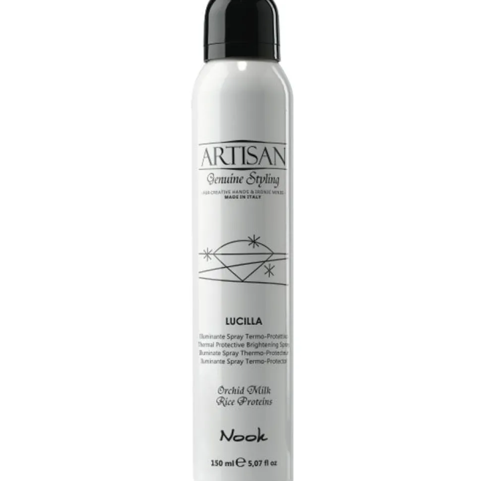 DasNook Artisan Lucilla Hitzeschutzspray schützt das Haar und schenkt gleichzeitig einen fantastischen Glanz. Es enthält Orchideen-Milch und Reisproteine, die das Haar pflegen und Frizz bändigen, ohne dabei zu fetten.