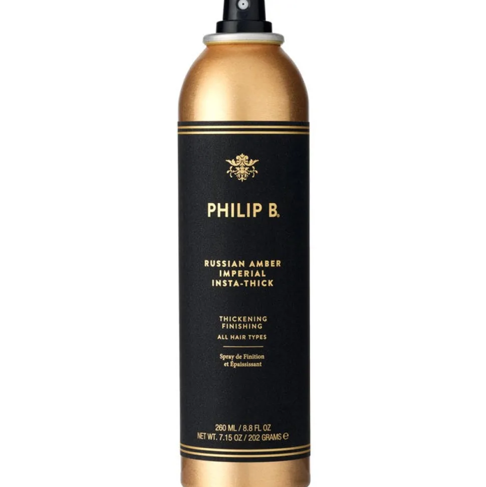 Das Philip B. Russian Amber Imperial Insta-Thick ist ein revolutionäres Stylingspray, das dem Haar Textur und Glanz verleiht, es geschmeidig macht und atemberaubendes Volumen schenkt. Völlig atemberaubendes und sexy Haar, im Handumdrehen und mit Langzeitwirkung. Die Anwendung ist beispiellos: Auf das trockene Haar gesprüht gibt die Kombination aus Trockenshampoo und aufpolsternden Polymeren selbst den schlaffsten Strähnen glamouröse, volle Sprungkraft – sofortiges Volumen garantiert.