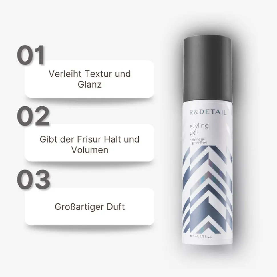 Das R&DETAIL Styling Gel ist für die moderne und intuitive Anwendungen. Es verleiht Textur und Glanz und gibt der Frisur Halt und Volumen. Es ist das perfekte Produkt für alle Gel Haar-Styles.