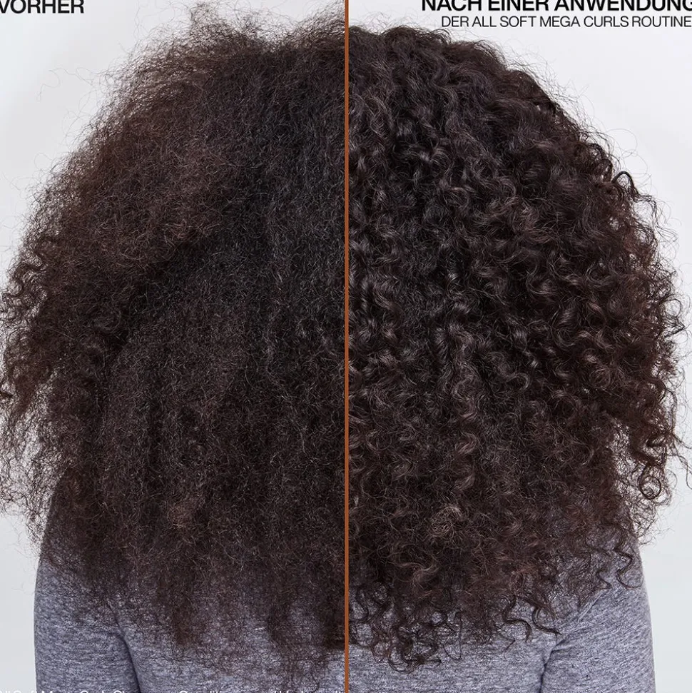 Nach dem Shampoonieren auftragen und im Haar verteilen. Ausspülen. Anschließend All Soft Mega Curls Hydramelt verwenden.