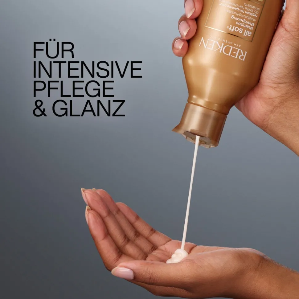 Das Redken All Soft Shampoo reinigt, regeneriert und verleiht trockenem, brüchigem Haar Geschmeidigkeit. RCT Protein-Komplex pflegt das Haar vom Ansatz, über das Mittelstück bis in die Spitze. Angereichert mit Omega-6 und Argan-Öl für intensive Geschmeidigkeit. Das Haar ist seidig soft, lässt sich besser stylen, erhält Geschmeidigkeit und Glanz.