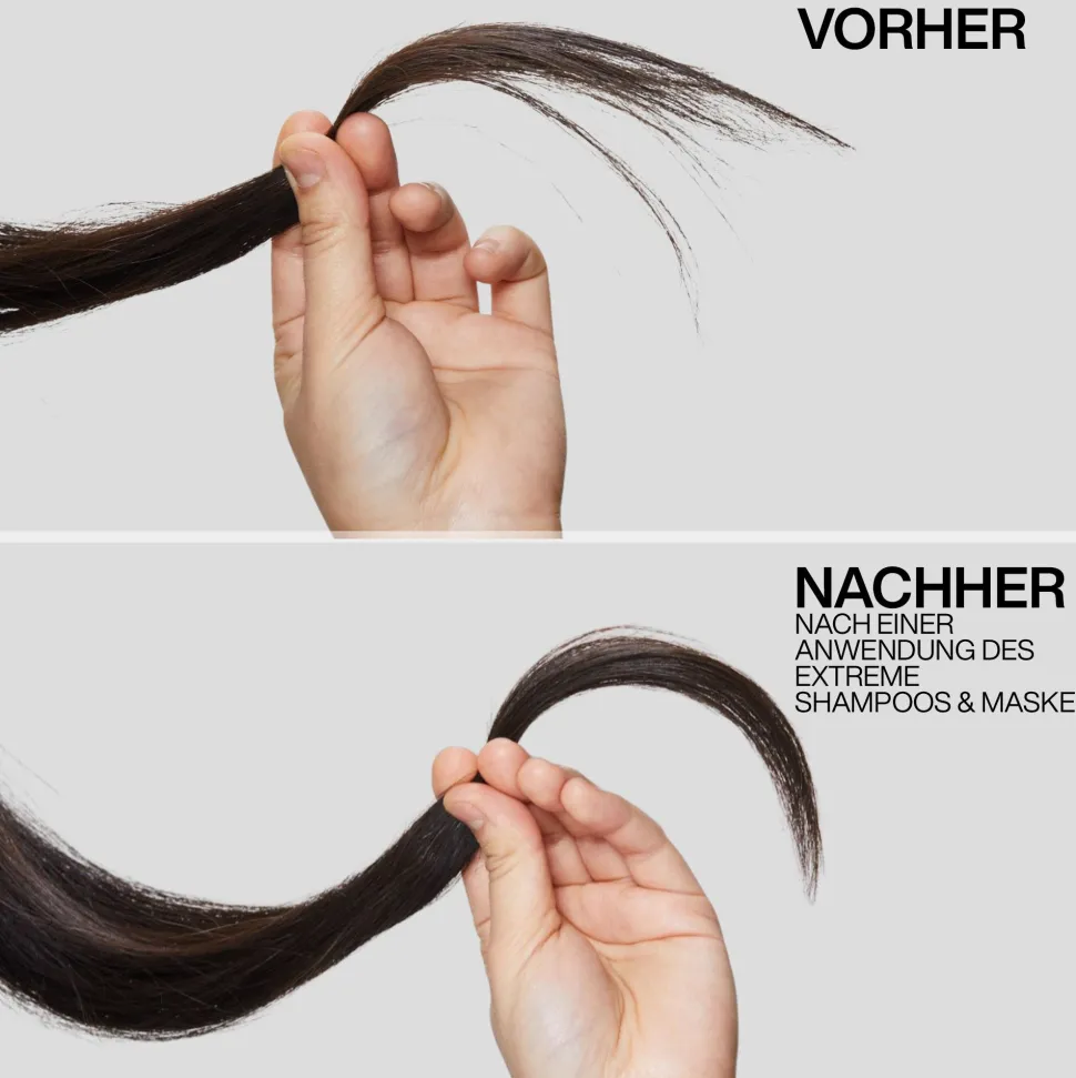 Die Redken Extreme Mega Haarmaske ist Maske und Care Extender in einem Produkt. Sie ist geeignet für geschädigtes & gestresstes Haar. Die stärkende Redken Extreme Mega Mask wirkt tief bis in die Haarfaser & repariert bzw. nährt es so. Sie beinhaltet pflegende Inhaltsstoffe wie RCT Protein Komplex, Soja Protein, Arginin, Sepicap und Ceramide