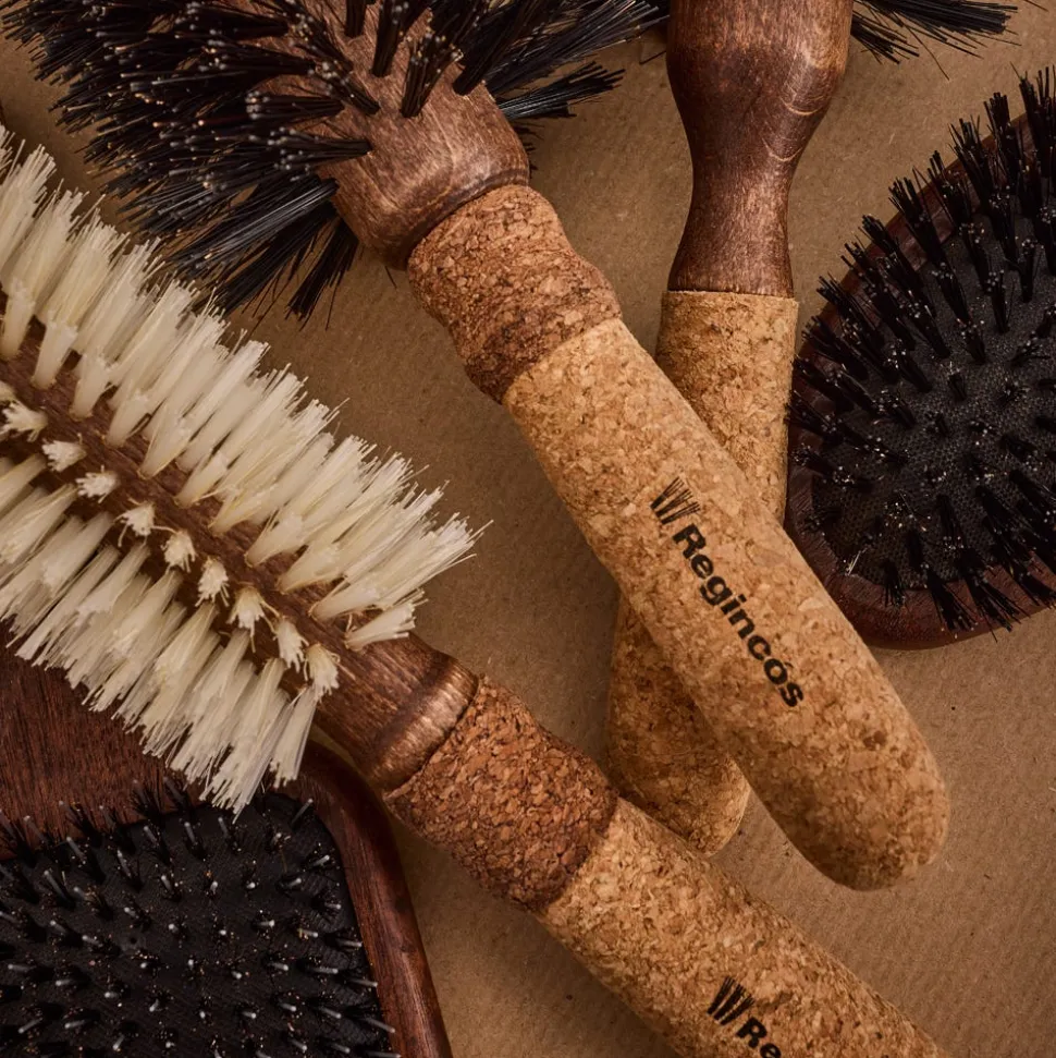 Die neue Regincós e.Cork Blonde 22429 Rundbürste 26/65 mm L liegt mit ihrem extralangen, zweifarbigen Korkgriff noch komfortabler in der Hand. Zwischen dem traditionellen hellen Korkgriff und dem Bürstenkörper befindet sich ein dunkler Korkring, der für bessere Kontrolle beim Styling und bei Föhnfrisuren sorgt. Das Model Blonde ist mit hellen Wildschweinborsten in Kombination mit einzigartigen hitzebeständigen Nylonborsten aus Kohlefaser bestückt und für besonders schonendes Styling von feinem und strapaziertem Haar geeignet.