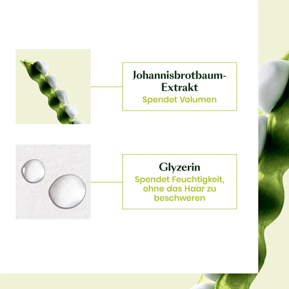 - Mit natürlichem Caroube-Extrakt – wirkt wie eine unsichtbare Stütze an den Haaren