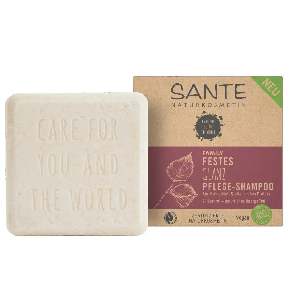 DasSANTE Festes Glanz Pflege-Shampoo Birkenblatt & Proteinfür normales und glanzloses Haar ist die nachhaltige Alternative zu herkömmlichen Shampoos ohne Plastik. Es reinigt mild, spendet Glanz und Geschmeidigkeit mit einem rein natürlichem, zartem Kokosduft. Bio-Birkenblatt ist bekannt für seine pflegende und stärkende Wirkung für glänzendes Haar.