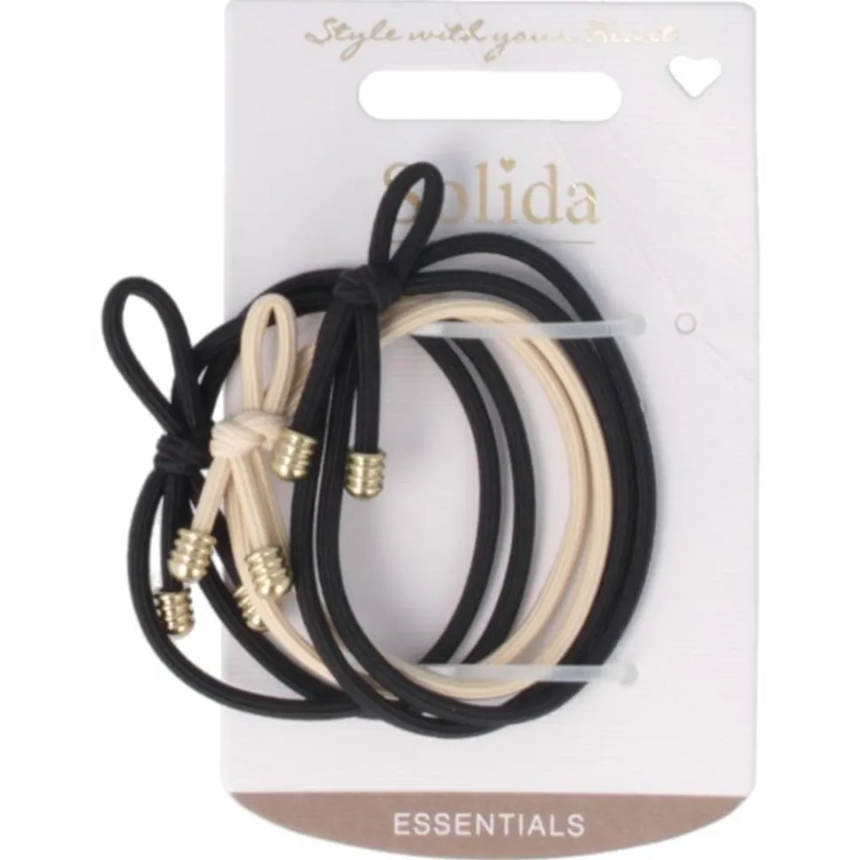 Die Solida Haargummi mit Schleife mehrfarbig vereinen schlichte Eleganz mit praktischer Funktion. In klassischem Schwarz und Beige gehalten, passen sie zu jedem Outfit und Anlass. Mit den goldfarbenen Enden und der dezenten Schleifenoptik setzen sie stilvolle Akzente in deinem Haar.