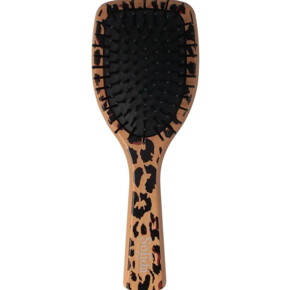 Die Solida Mini Paddle Brush Leopard Printbesteht aus Birkenholz. Flexible Kunststoffstifte ermöglichen ein haar- und kopfhautschonendes Entknoten der Haare. Gleichzeitig wird die Kopfhaut sanft massiert. Durch die Größe der Mini Paddle-Bürste ist sie der perfekte Begleiter für unterwegs. Ideal für alle Haartypen.