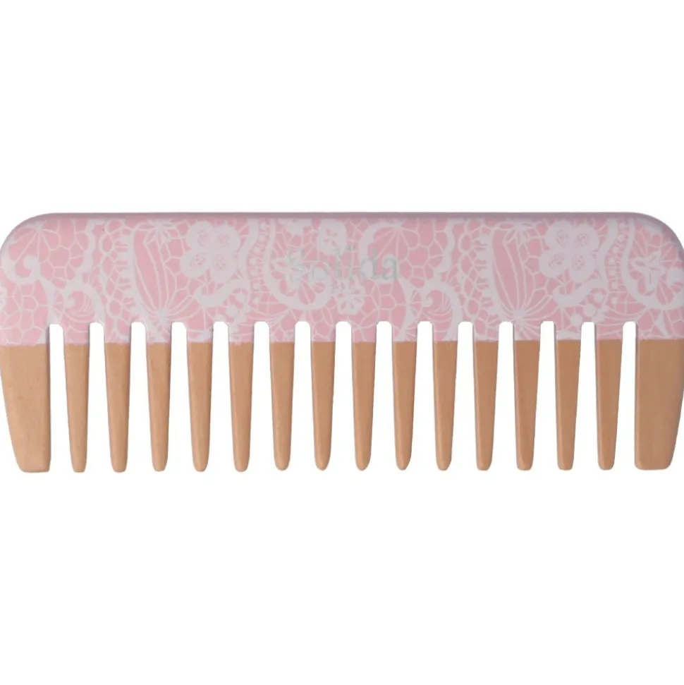 Der Solida Stylingkamm Rosa Spitze Print aus Birkenholz besticht nicht nur durch seine Optik sondern auch durch seine Funktion. Abgerundete Zähne ermöglichen ein haar- und kopfhautschonendes Styling ohne Ziepen und Reißen. Der Strähnenkamm ist der perfekte Begleiter für unterwegs. Durch die weiten Zähne ist der Strähnenkamm besonders gut für dickes und lockiges Haar geeignet.