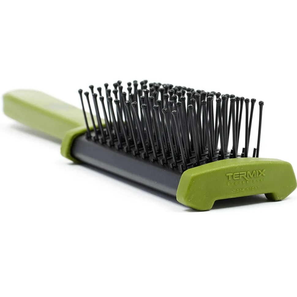 DieTermix Men Barber Thermal Flat Brush Flachbürsteerfüllt ihre Funktion sowohl bei nassem als auch bei trockenem Haar und ist zweifellos die beste Option zum Entwirren der Haare, da sie Fasern enthält, die das Haar vor Bruch oder möglichen Schäden schützen.Dank ihrer belüfteten und keramikbeschichteten Bürste ist sie in der Lage, in der Bürstenbewegung Luft zu erzeugen, um dem Haar Volumen zu verleihen und den Ansatz zu heben, was diese Bürste perfekt für Frisuren wie den Pompadour macht.