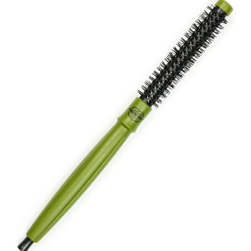 DasTermix Rundbürste mit ionisierten Fasern Ø12 istperfekt, um dem Haar Volumen zu verleihen, es weicher zu machen und zu formen. Die Bürste zeichnen sich nicht nur durch ihr modernes Barbierdesign in Militärgrün aus, sondern auch durch ihre Eigenschaften.Die keramische Beschichtung sorgt dafür, dass die Temperatur erhalten bleibt und gleichmäßig verteilt wird, wodurch die Trockenzeit verkürzt und die Dauer und Qualität der Frisur verbessert wird. Außerdem können Sie dank der ionisierten Fasern Ihr Haar bürsten, ohne statische Aufladung zu erzeugen, und Sie erhalten einen spiegelnden Glanz, ohne das Haar zu beschädigen.