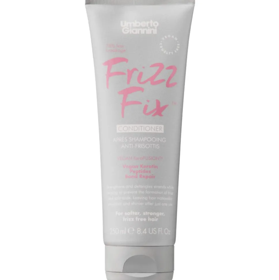 DerUmberto Giannini Frizz Fix Conditioner mit VEGAN KeraFUSION™BOND REPAIR TECHNOLOGY stärkt und entwirrt das Haar und beugt gleichzeitig der Bildung von Frizz und Spliss vor.