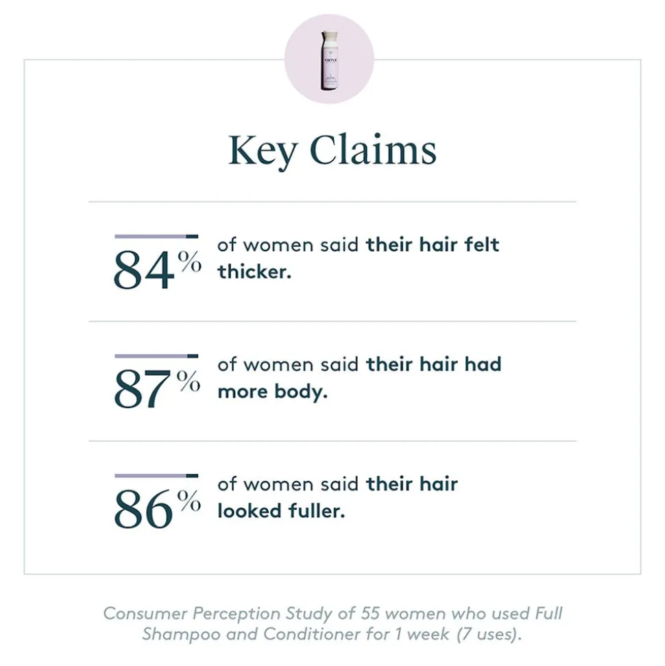 Full Shampoo und Conditioner mit dem Alpha-Keratin-60ku®-Protein, dem ersten seiner Art, wurden speziell dafür entwickelt, feinen und kraftlosen Haarsträhnen Volumen und Dichte zu verleihen. Diese außerordentlich leichten Formeln unterstützen den Aufbau von Volumen aus dem Inneren heraus und verbessern im Laufe der Zeit die Gesundheit der Haare.
