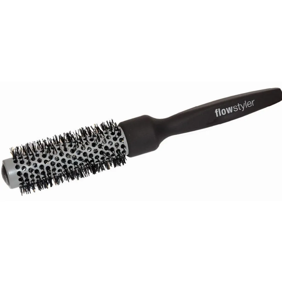 Der Canal Flowstyler Buchenholz, 25 mm Hülse, 40 mm Borste hat einen Durchmesser von 25 mm, eineKeramikhülse, einen Holzkern und istmit Soft-Touch Lackierung.
