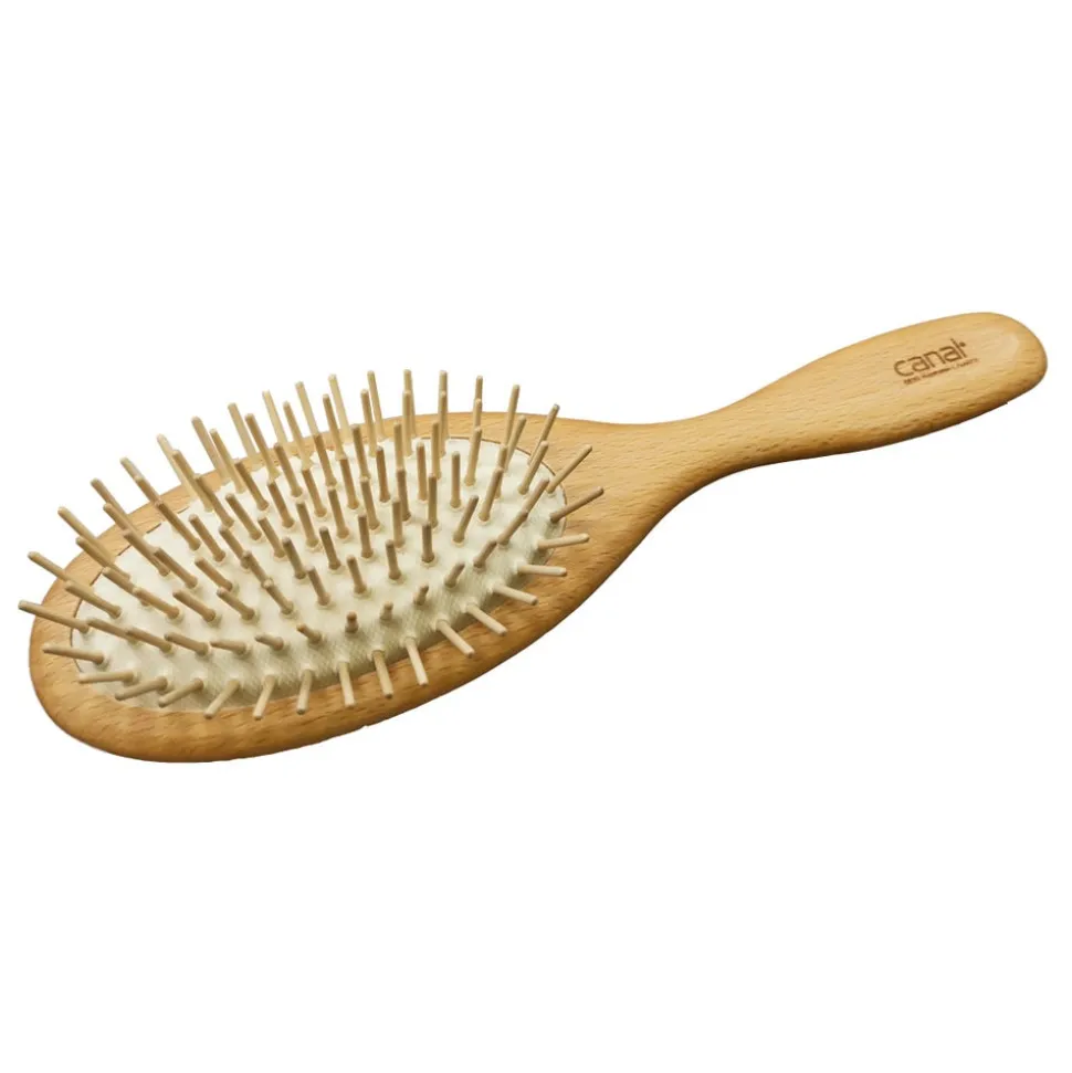Die Canal Pneumatikbürste groß, antistatischistantistatisch,glättet und reinigt das Haar und hatGriffe aus heimischem, geöltem Buchenholz.
