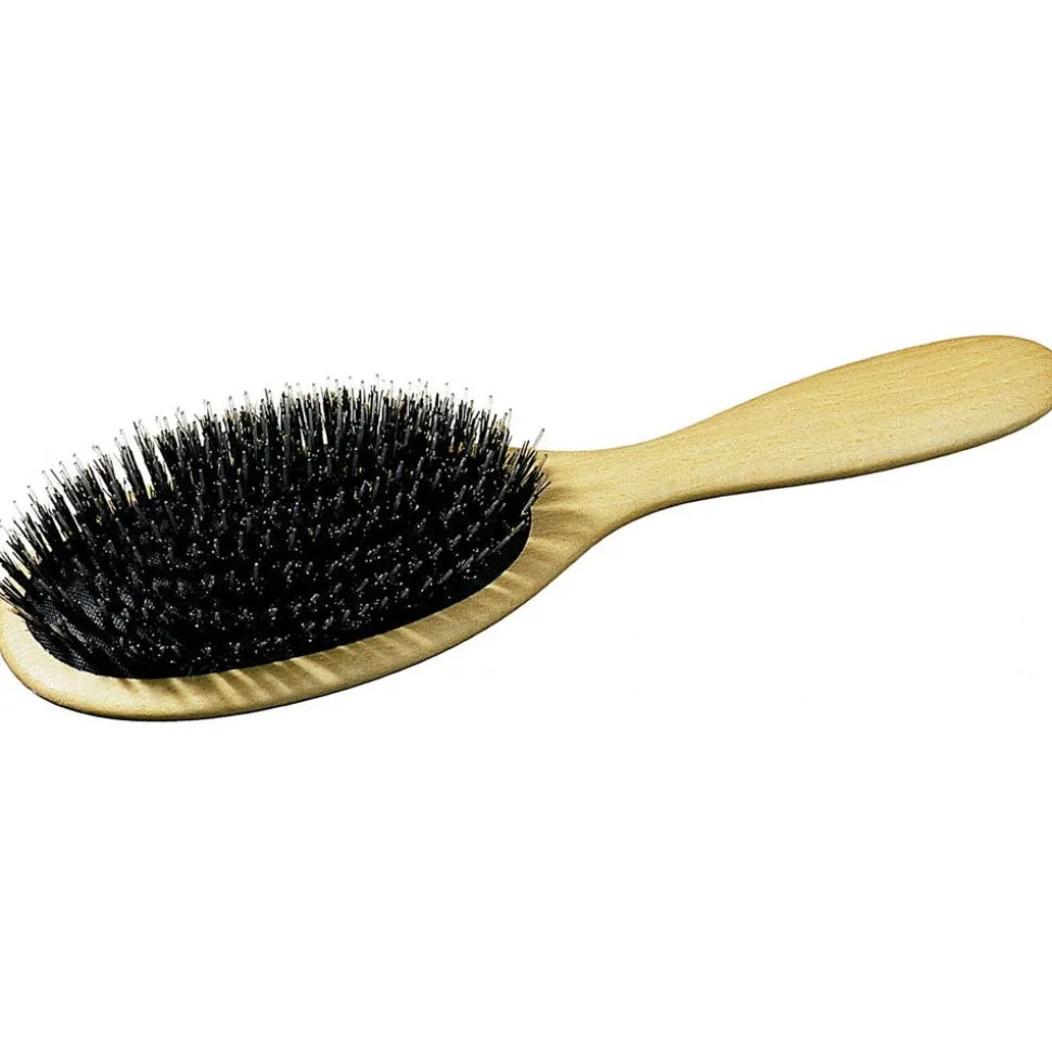 Die Canal Pneumatikbürste groß glättet und reinigt das Haar mit ihren Metallstifte. DieGriffe sind aus heimischem, geöltem Buchenholz.