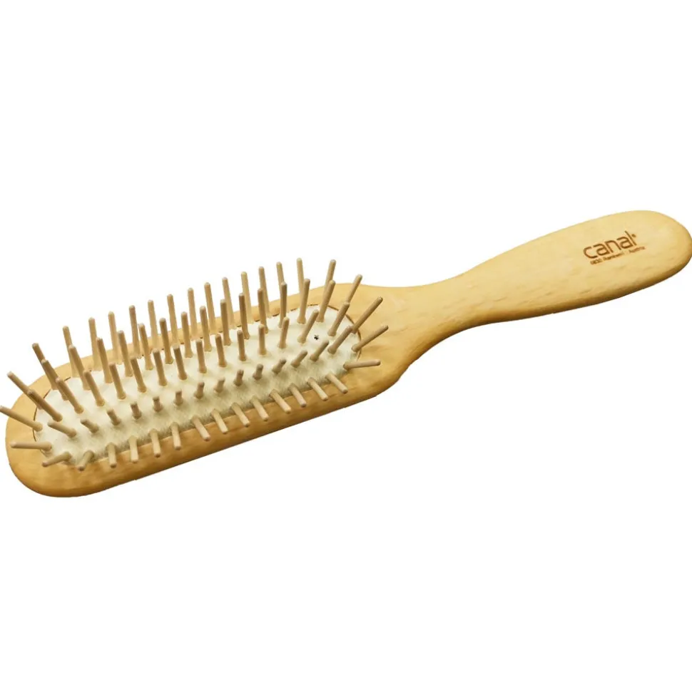 Die Canal Pneumatikbürste klein, antistatischistantistatisch,glättet und reinigt das Haar und hatGriffe aus heimischem, geöltem Buchenholz.