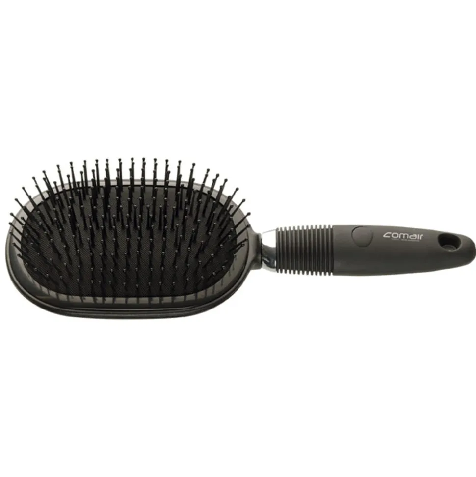 Die Comair Bürste Jumbo schwarz KS-Noppen 13 reihighat ein Gummikissen, Noppen und eine Aufhänge-Öse.