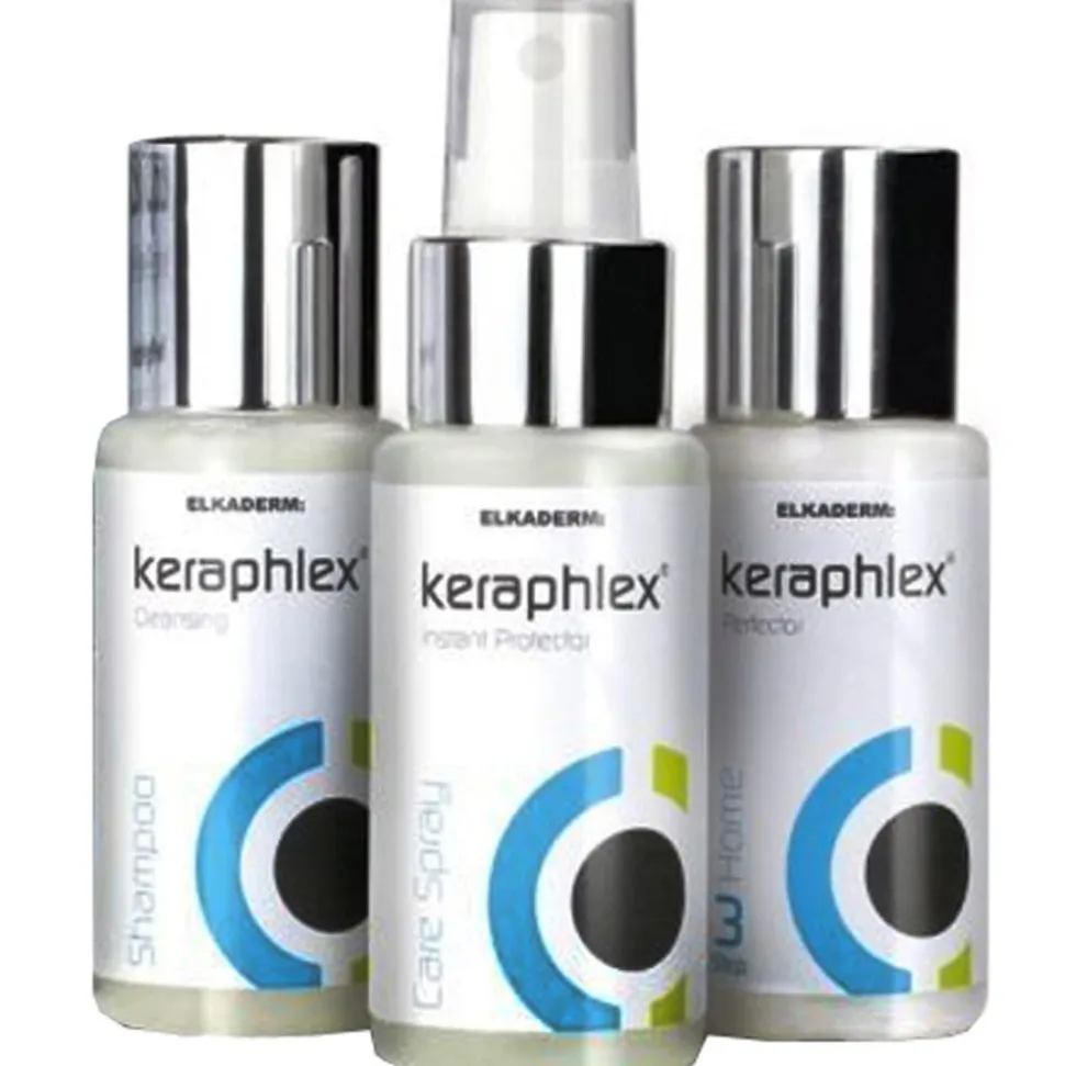 Lassen Sie sich von der einzigartigen Wirkung von Keraphlex überzeugen und testen Sie die neue Dimension der Haarpflege. Keraphlex ist ein neuartiger proteinbasierender Wirkstoffkomplex. Als Zusatz in Blondiercreme, einer Farbzubereitung oder im Dauerwellprozess schützt Keraphlex vor Haarschäden. Als Kuranwendung repariert Keraphlex bestehende Haarschäden. Der Wirkstoffkomplex ist in der Lage die Cuticula (Schuppenschicht) zu durchdringen und die Cortex (Faserstamm) zu verstärken. Die resultierende Erhöhung der maximalen Zugstärke und Biegemomentes verhindern Haarbruch. Die erhöhte Abriebfestigkeit verhindert Spliss.