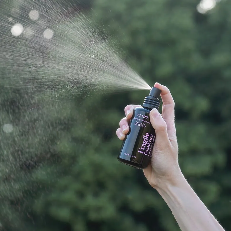 Das Fragile Flirt Leave-In Milky Mist ist ein Leave-In Detangler und Smoother mit Aloe Vera. Die Formel pflegt und entwirrt sofort – für geschmeidiges Haar ohne zu beschweren. Das Leave-in Spray wurde von Franco Gobbi entwickelt – der Hairstylist hinter den Looks von Stars wie Bella Hadid und Kendall Jenner. DasLeave-in-Mist sorgt für Glanz, Schutz und Anti-Frizz.Aloe Vera beruhigt und spendet Feuchtigkeit, Hydrolysierte Proteine stärken die Haarfaser und verhindern Haarbruch. Die Formel ist natürlich parfümiert mit Feige, Pfirsich, Bergamotte und Jujube.