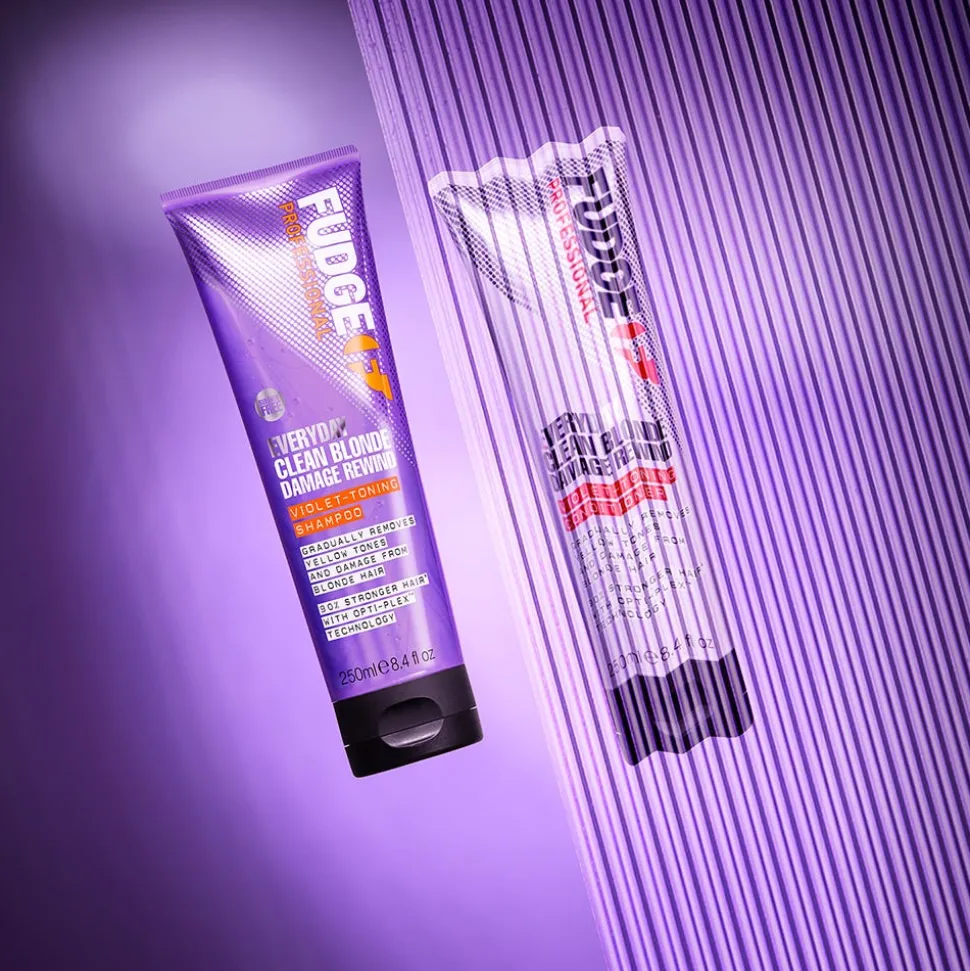 Das Fudge Clean Blonde Damage Rewind Violet-Toning Shampoo ist mit seiner doppelten Wirkung und durch eine ausgewogene Menge an violetten Mikropigmenten perfekt für die tägliche Anwendung in natürlich blonden oder blondierten Haar. Geschädigtes Haar wird repariert und Gelb- und Messingtöne im Haar werden neutralisiert. Durch die einzigartige Opti-PLEX ™ -Technologie wirkt das Haar stärker und gesünder und hält blonde Farbtöne länger. Sie besteht aus hydrierten, pflanzlichen Proteinen und dringt tief in den Haarkern ein, um das Haar von innen heraus zu stärken und den Haarschaft bei Anwendung in Kombination mit dem Everyday Clean Blond Conditioner bis zu 90 % kräftiger, glänzender und 10x geschmeidiger wirken lassen. Die FragranceFuse™ Technologie verleiht dem Haar einen unwiderstehlichen Duft der 24 Stunden hält.