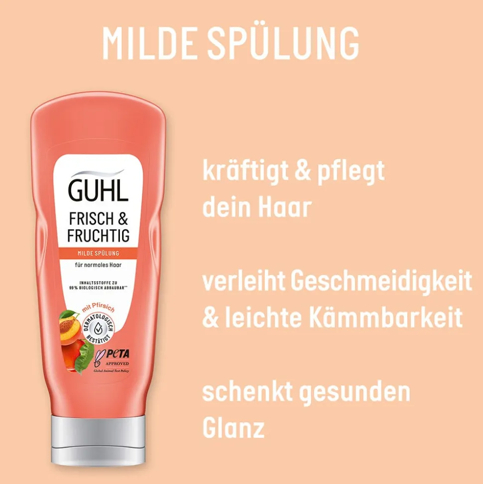 DasGuhl Frisch & Fruchtig Mildes Shampoofür normales Haar, reinigt das Haar sanft und kräftigt es bis in die Spitzen – Ideal für die tägliche Anwendung. Sorgt für frisches Haar: Mit dem veganen, silikonfreien Haarshampoo verleihen Sie Ihrer Haarpracht einen gesunden Glanz und strahlende Vitalität. Mit milde formulierung: Dank Pfirsich hat das Shampoo einen fruchtigen Duft und ist belebend – Rezeptur für glänzendes Haar.