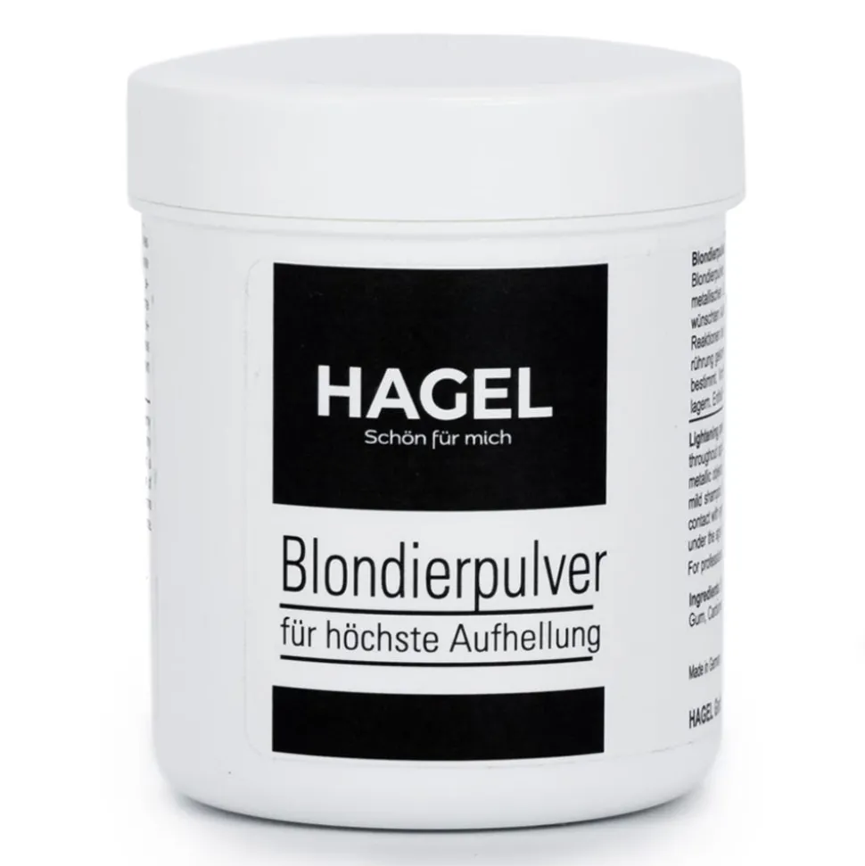 DasHAGEL Blondierpulver für höchste Aufhellung vom Ansatz bis zu den Spitzen. Kein unangenehmes Stauben. Ein außergewöhnlich leistungsstarkes Blondierpulverfür Strähnen & Ganzblondierungen. Es blondiert natürliche und gefärbte Haare. Sicheres Arbeiten und gleichmäßig helles Ergebnis. Bleibt geschmeidig, läuft nicht ab und trocknet nicht ein.
