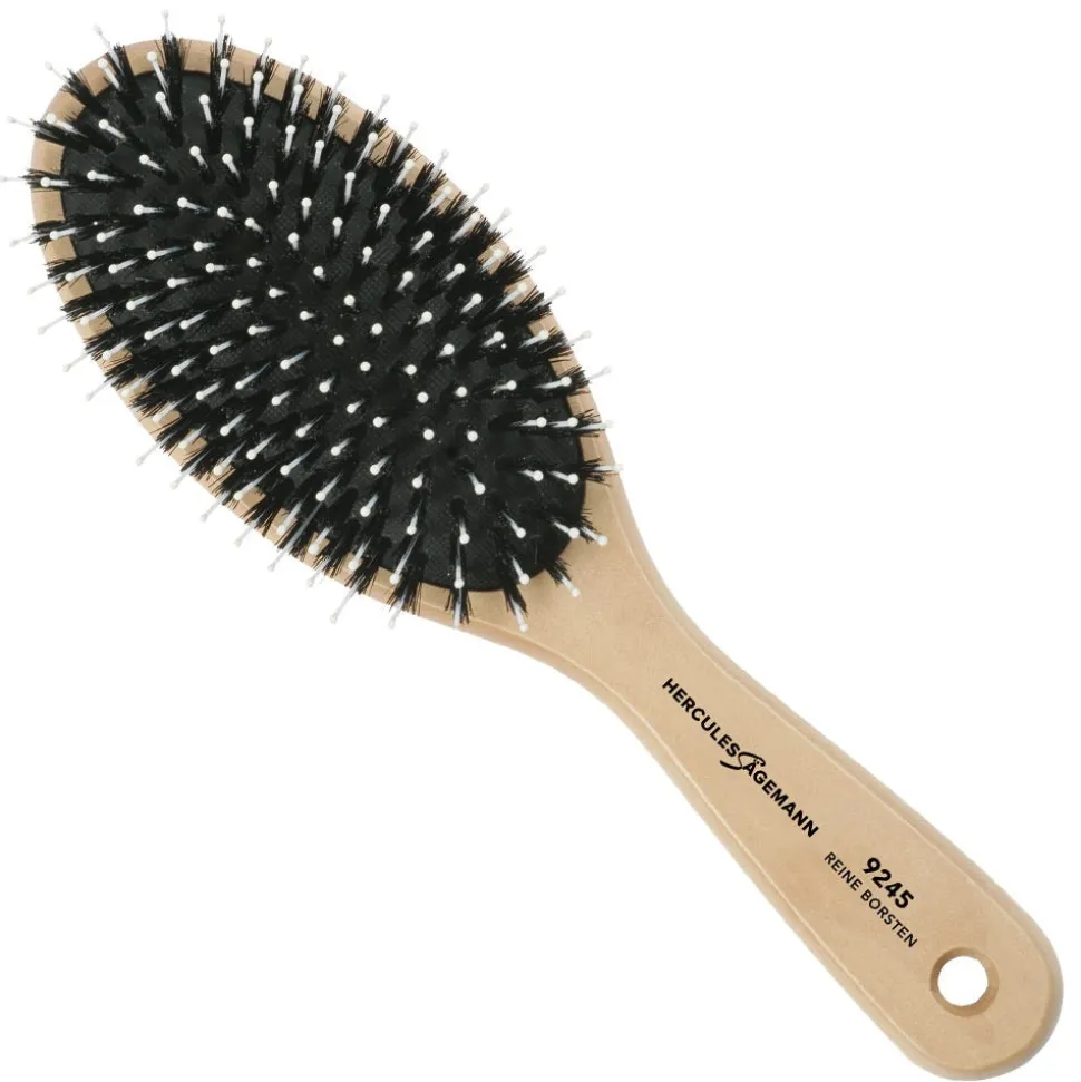 Die Hercules Sägemann Haarpflegebürste 9245 mit dichter Beborstung aus reinen Wildschweinborsten sorgt für gesundes Haar. Längere, hitzebeständige und abgerundete Polyamidstifte für sanfte Massage der Kopfhaut und geordnetes Haar.