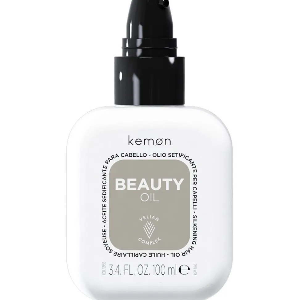 Das kemon Care Beauty Oilist ein Haaröl auf Basis von 3 kostbaren Ölen, das der Schönheit noch mehr Ausdruckskraft verleiht. Dank seiner speziellen Rezeptur bändigt Beauty Oil das Haar, macht es seidig, glänzend und glatt. Die Mischung aus kostbaren Ölen hat eine hoch feuchtigkeitsspendende, pflegende und schützende Wirkung. Revitalisierendes Arganöl mit Anti-Age Plege verleiht dem Haar mehr Geschmeidigkeit und Glanz. Süßmandel- und Leinöle wirken schützend, verleihen ebenfalls Geschmeidigkeit und beugen Schäden durch übermäßige Austrocknung vor.