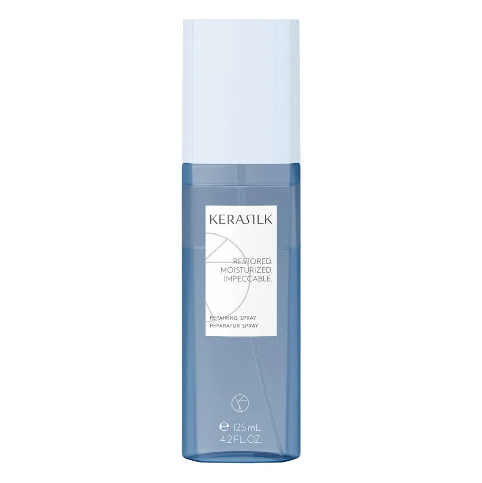DasKerasilk Reparatur Sprayist ein leichtes Spray mit Biomimetic SIlk und Hyaloveil. Die zu100 % vegane Formulierung spendet Feuchtigkeit, pflegt, baut geschädigtes Haar wieder auf und schützt vor Haarbruch–für sofortige Regeneration, Reparatur und ein gesundes, geschmeidiges Haargefühl.
