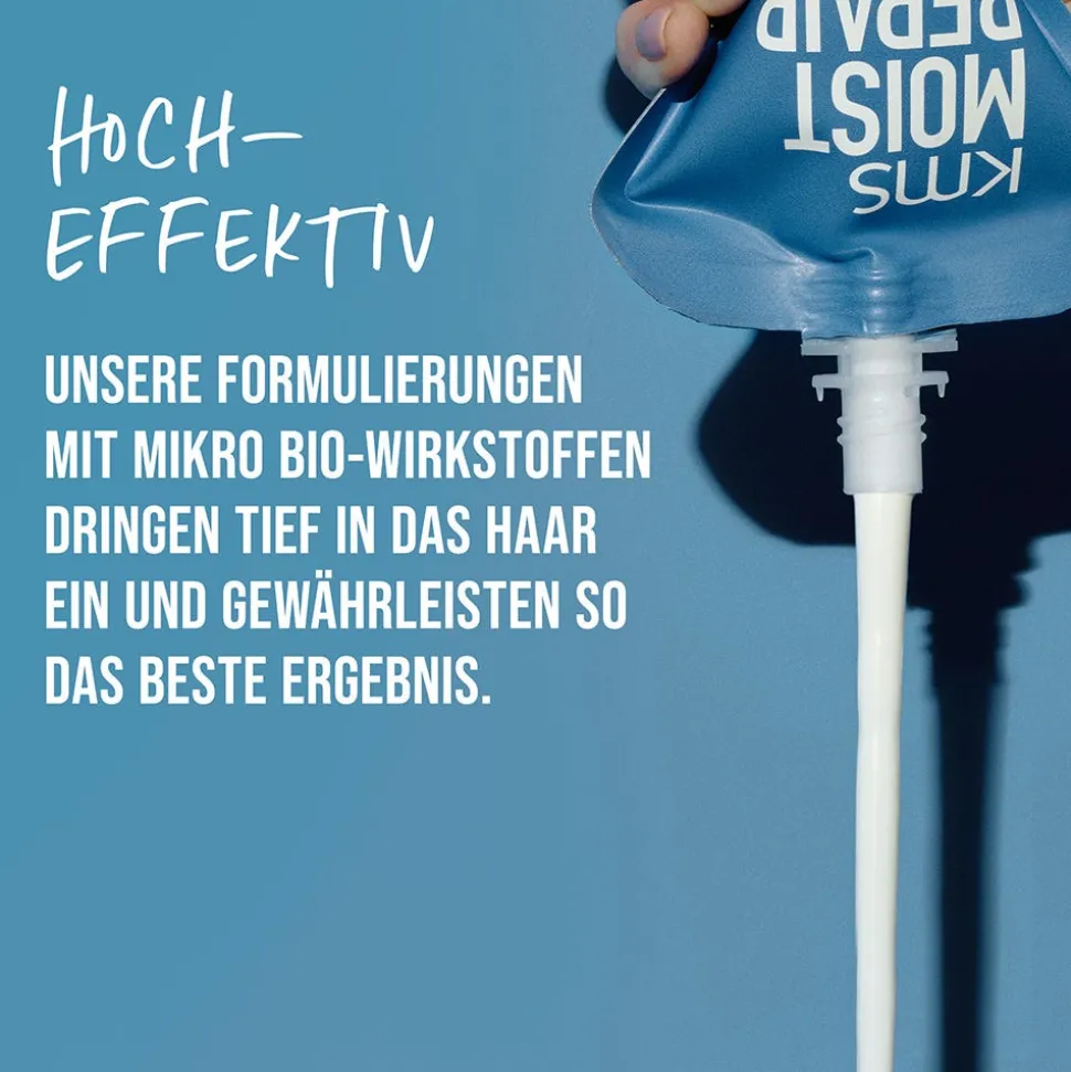 Das KMS Moistrepair Intensive Restore Treatment repariert selbst stark geschädigte Haarstrukturen von innen heraus um bis zu 99%.