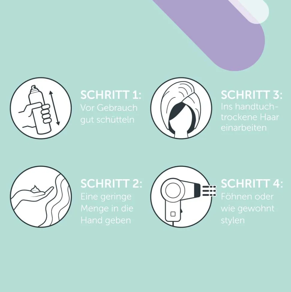 - eine geringe Menge in die Hand geben und ins handtuchtrockene Haar einarbeiten