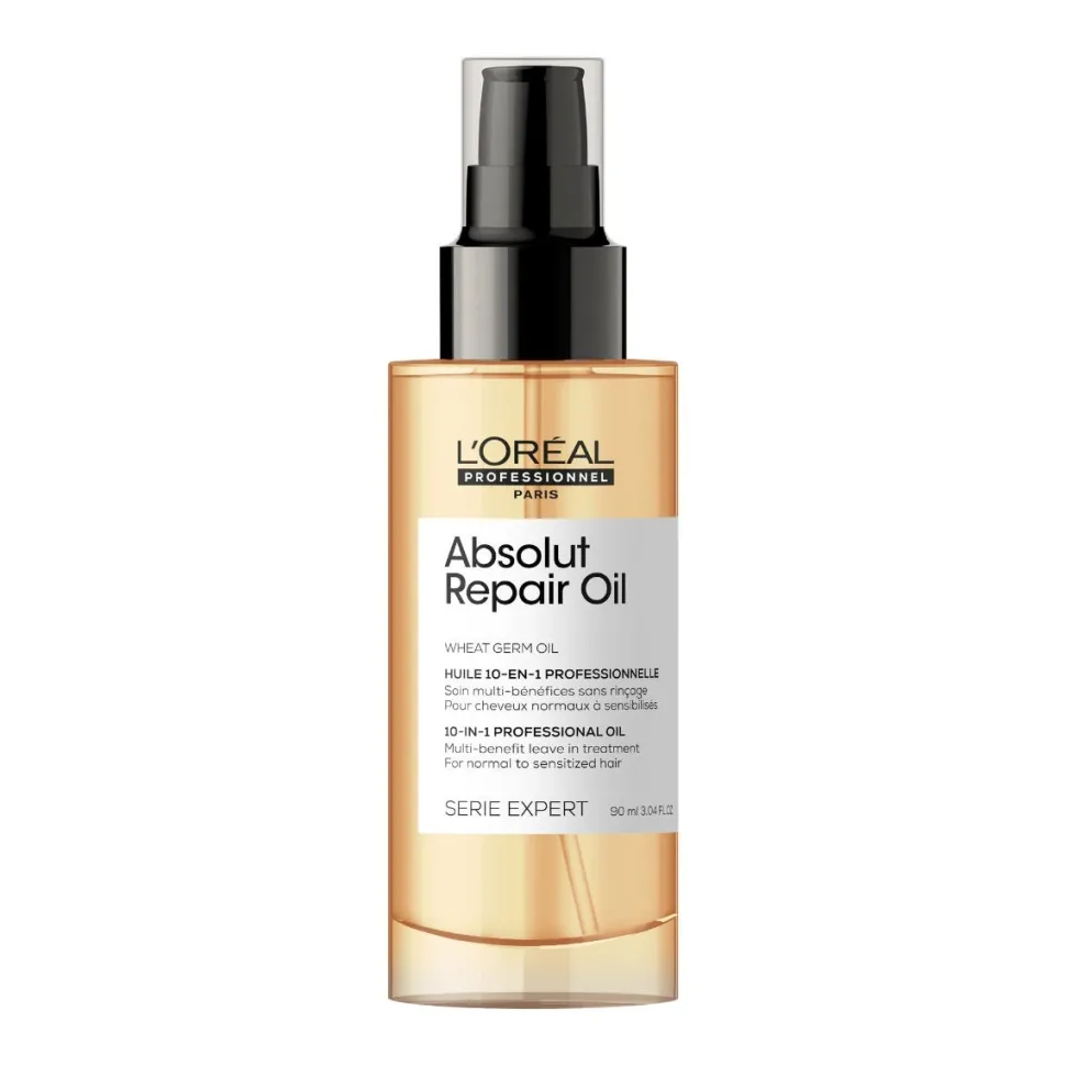 DasL’Oréal Professionnel Paris Serie Expert Absolut Repair 10-in-1 Oilist ein Haaröl, das speziell für trockenes und strapaziertes Haar entwickelt wurde. Es sorgt für seidig weiches Haar, ohne zu beschweren.