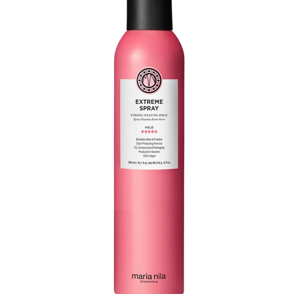 DasMaria Nila Extreme Sprayist ein sanftes Haarspray mit extra starkem Halt. Der enthaltene Colour Guard Complex schützt die Haare vor UV-Strahlen und freien Radikalen und sorgt somit für länger anhaltende, strahlende Farbkraft. Stärke des Halts: 5 von 5