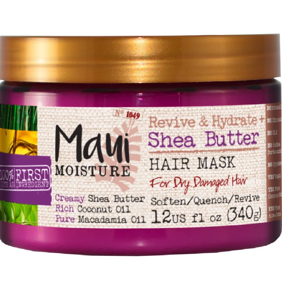 DieMaui Moisture Revive & Hydrate Shea Butter Mask ist ein Traum für jeden mit trockenem, geschädigtem oder überstyltem Haar. Diese Haarmaske spendet intentive Feuchtigkeit und speichert sie im Haar. Die Formel mit Shea-Butter, Kokosnuss-Öl und Macadamia-Öl macht geschmeidig, hydratisiert und revitalisiert. Bei besonders trockenem Haar kann diese tiefenwirksame Pflege ohne Ausspülen auf dem nassen Haar verbleiben.