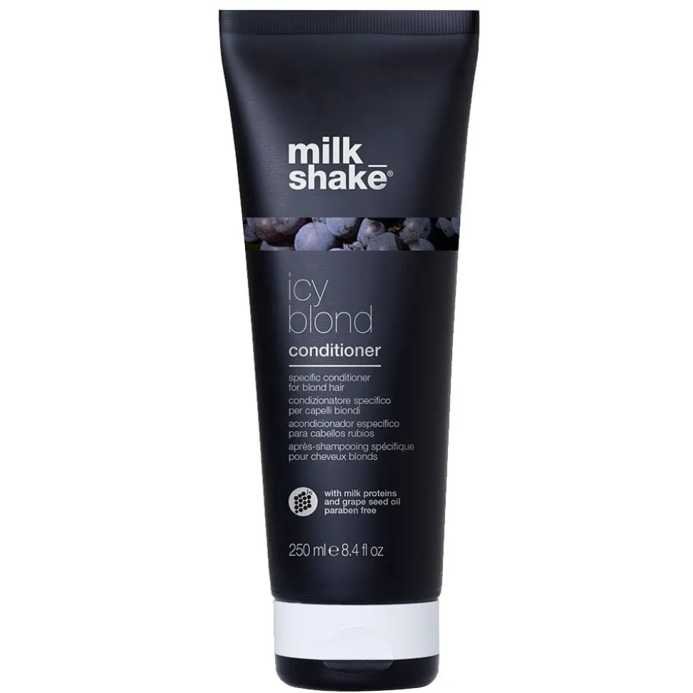Dermilk_shake Icy Blond Conditioner pflegt blondes Haar intensiv und versorgt es mit wertvollen Nährstoffen. Die Formulierung mit Milchprotein und Traubenkernöl sorgt für weiches, geschmeidiges Haar, in einem strahlenden und kühlen Blond.