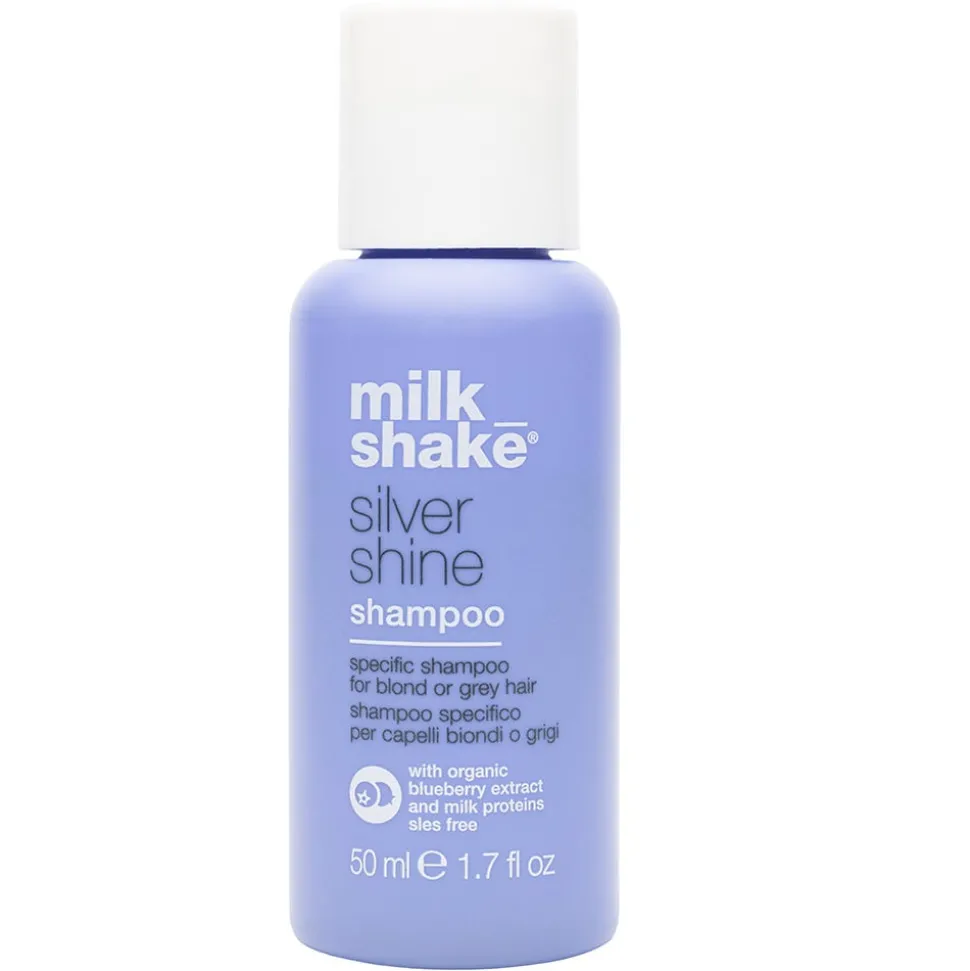 Dasmilk_shake Silver Shine Shampooneutralisiert durch ein neuartiges Farbpigment den unerwünschten Gelbstich in grauem, reifem Haar, nach einer Blondierung oder in natürlich blondem Haar. Gleichzeitig spendet es dem Haar mit seinen wertvollen Inhaltsstoffen aus Milchproteinen, Frucht-Extrakten (wie beispielsweise organischem Heidelbeer-Extrakt) und dem vonmilk_shakepatentierten WirkstoffkomplexIntegrity 41intensive Pflege. Das Haar erhält einen wunderbar gleichmäßigen, kühlen Farbton und wird glänzend und weich.